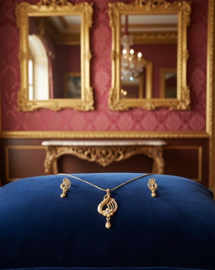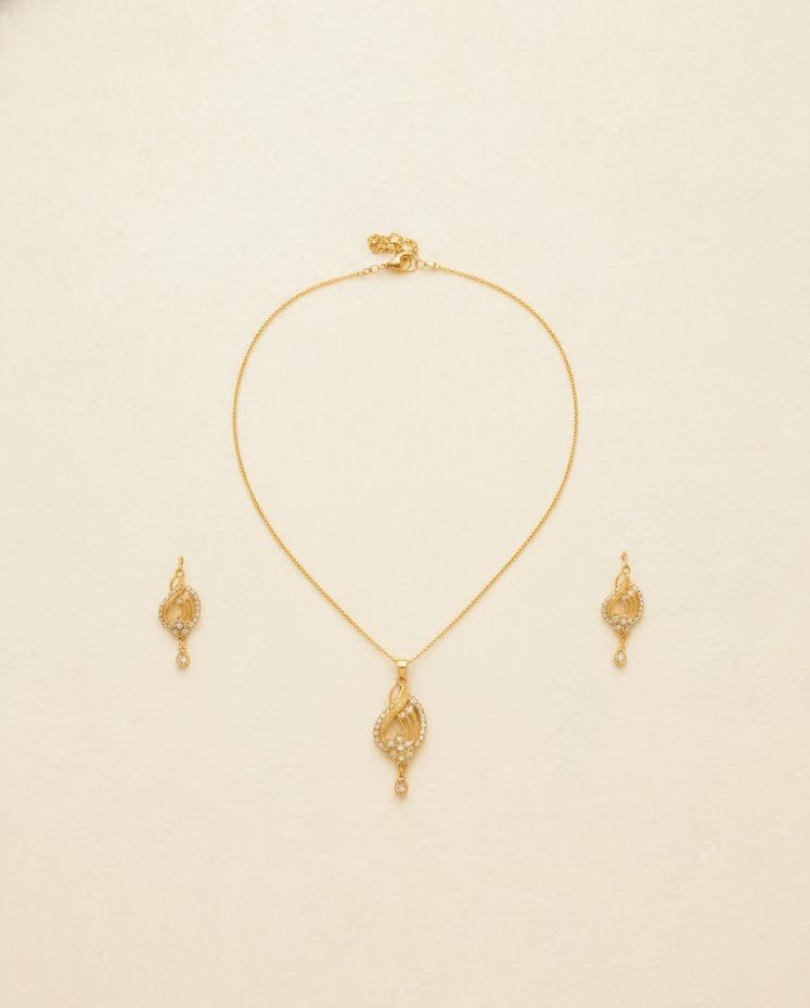 Complete Set: Comes with a sleek gold-plated chain and a pair of matching drop earrings to complete your look.