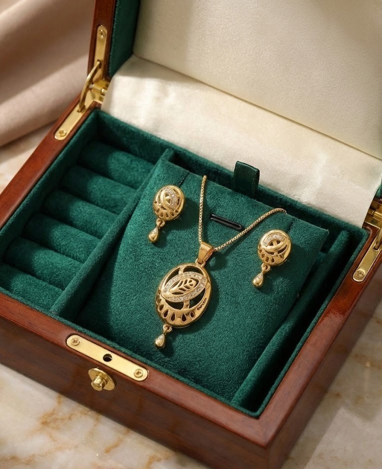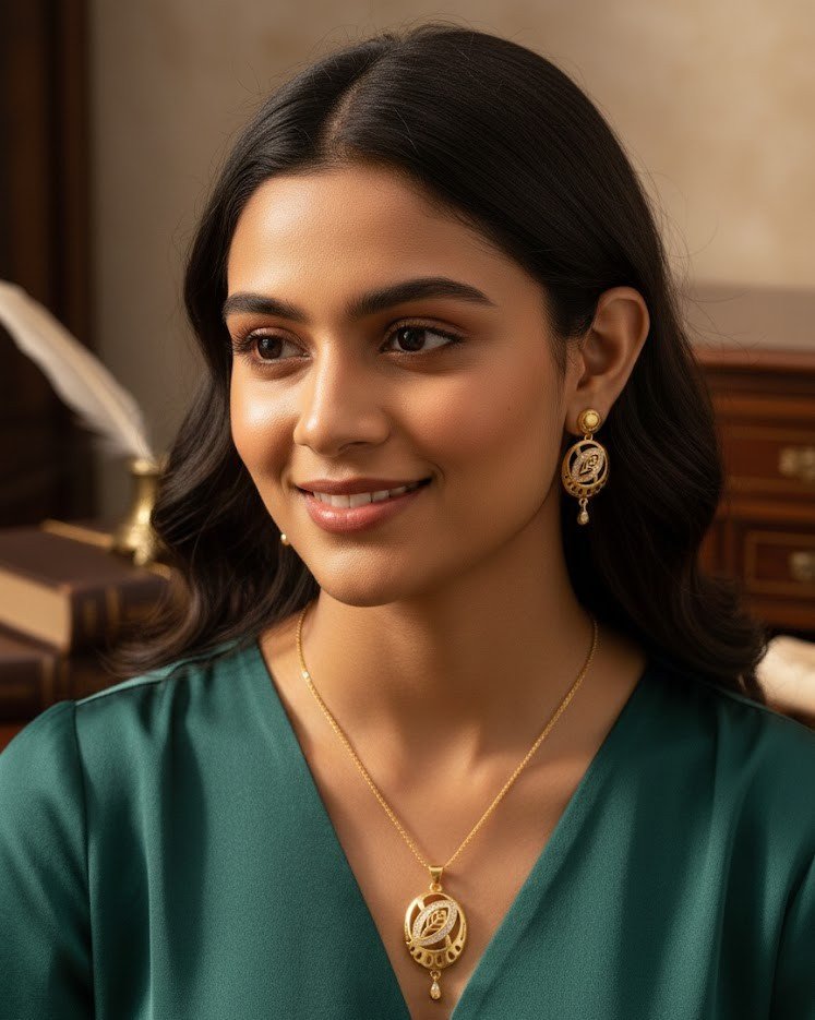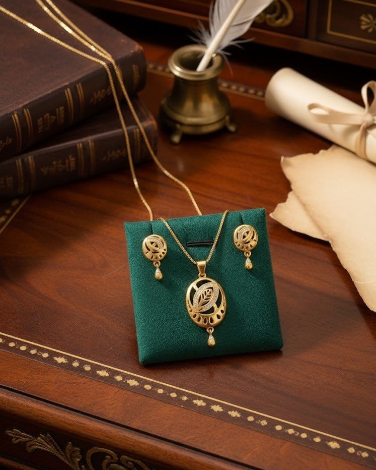 Package: Comes with a sturdy gold-plated chain and matching designer earrings.