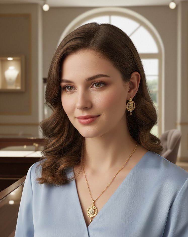 Matching Earrings: Comes with a pair of perfectly coordinated drop earrings that mirror the pendant’s elegant design.