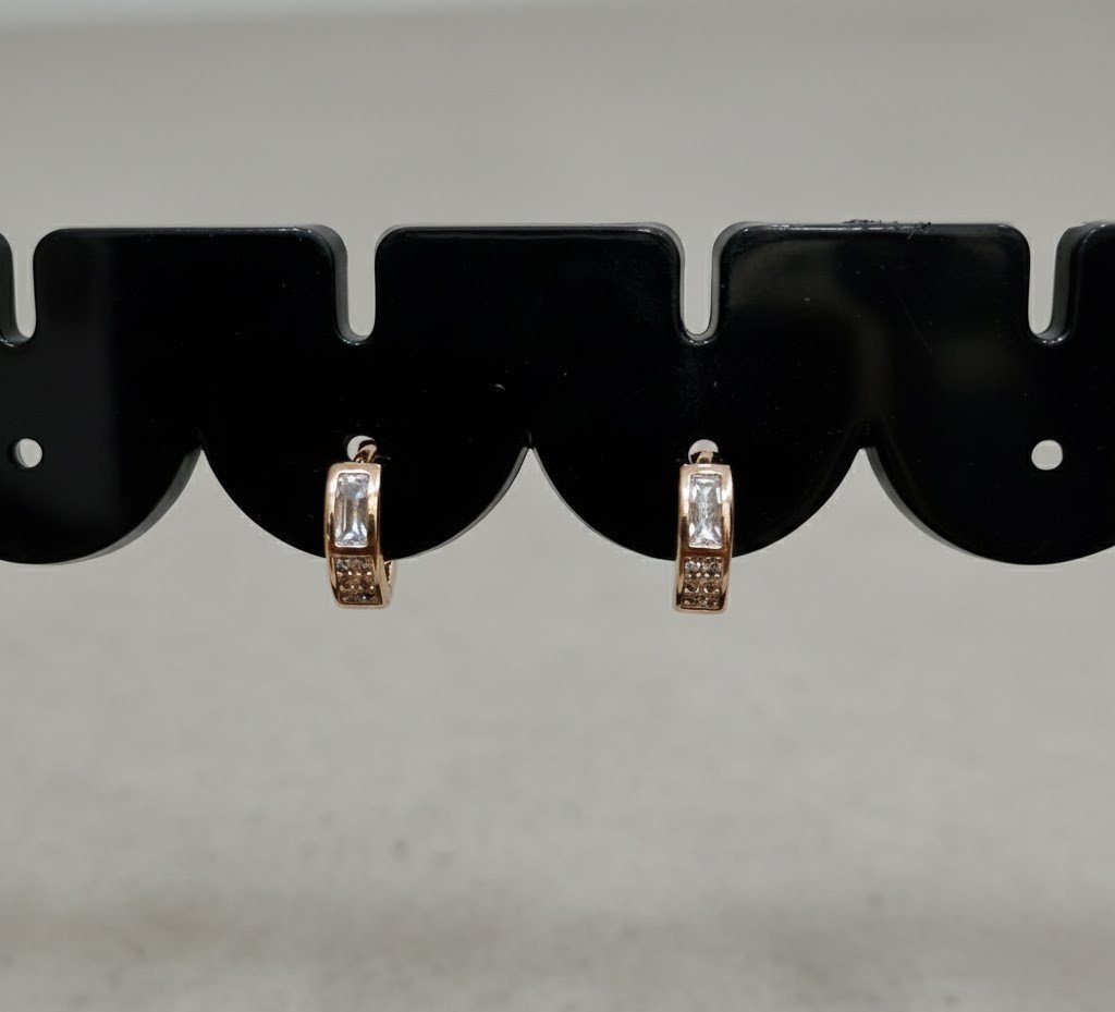 Add a touch of contemporary luxury to your jewelry collection with these exquisite Baguette-Style Huggie Hoops. These earrings feature a unique "window" design with a large, brilliant baguette-cut crystal at the center, accented by delicate round-cut crystals for a multi-dimensional sparkle.
