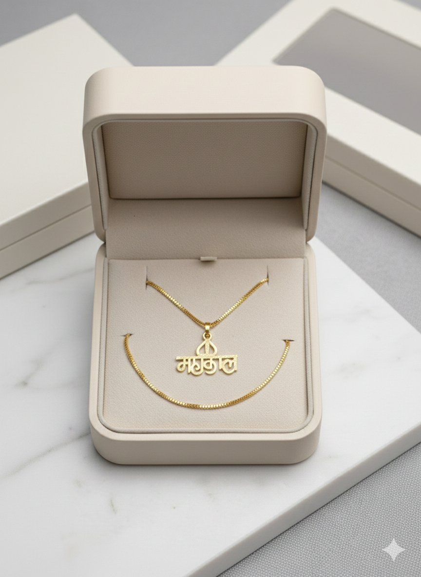Artistic Script Detailing: The "महाकाल" inscription is rendered in a beautifully stylized font with intricate textures, showcasing fine craftsmanship and adding depth to its design.