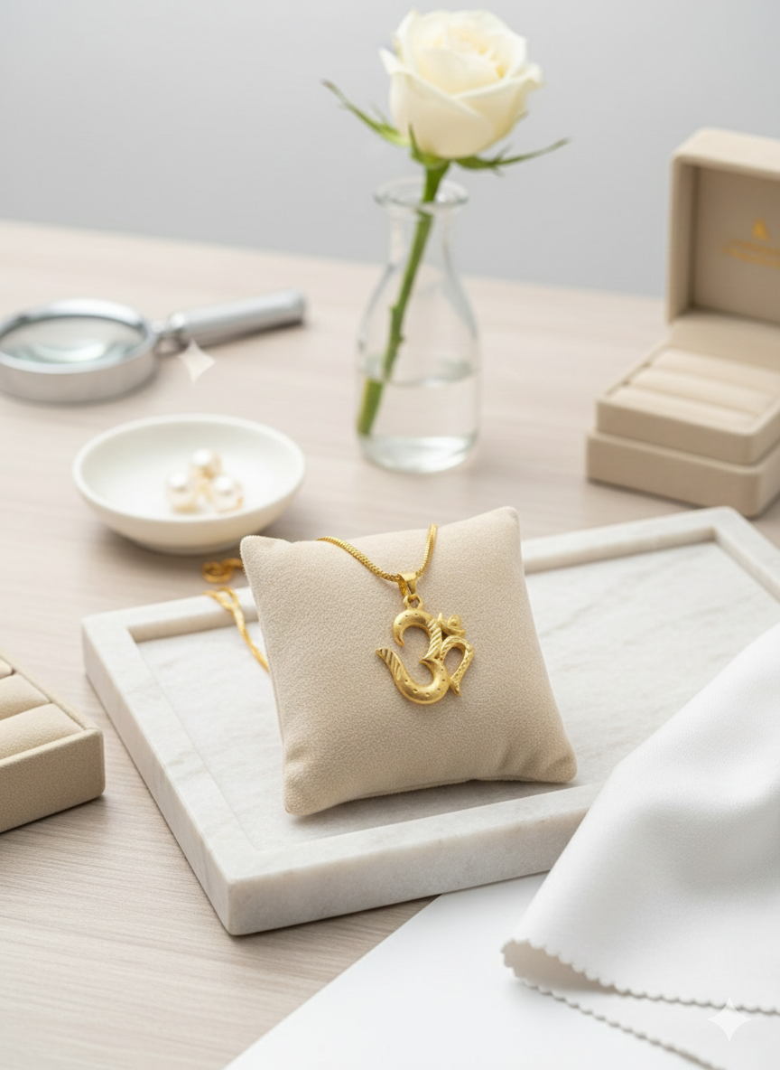 Intricate Detailing: The Om pendant boasts delicate and textured details, enhancing its visual appeal and craftsmanship.